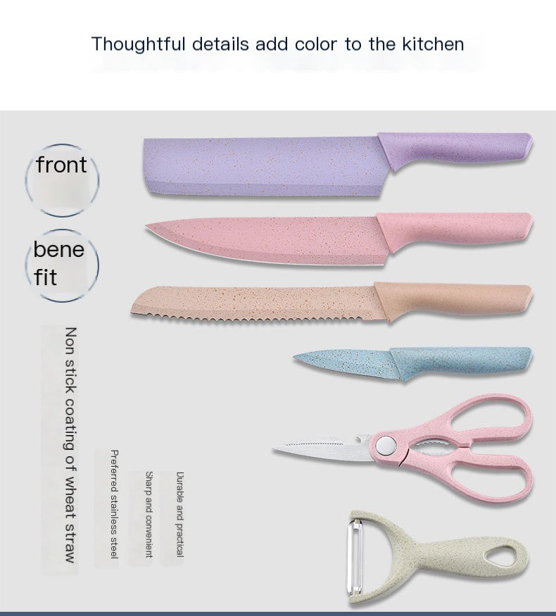 Colourful 6-Piece Kitchen Knifes, Peeler & Scissors Set