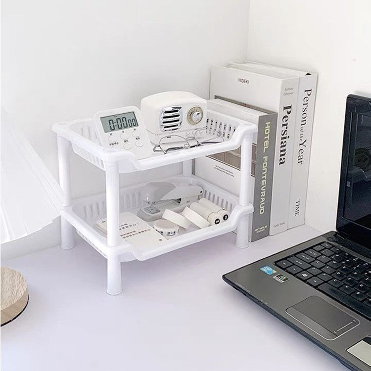 This storage rack is here to turn random piles into something that looks on purpose. Books, notebooks, snacks, cables, decorative items you don’t remember buying — give them a shelf and call it organised.
