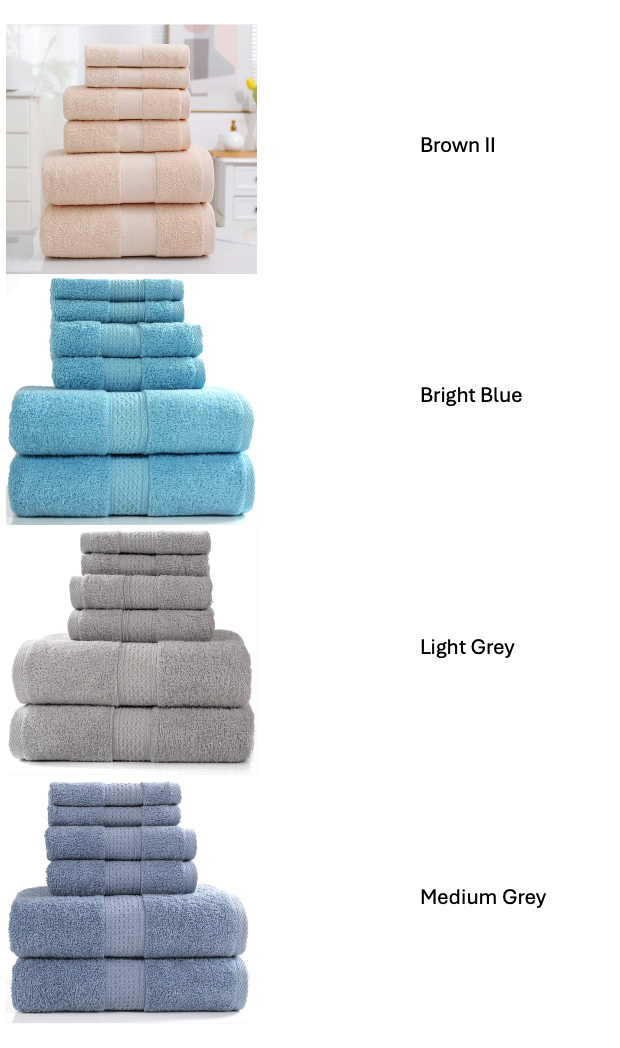 Six proper cotton towels so you always have a clean one ready, no panic drying, no towel roulette.
