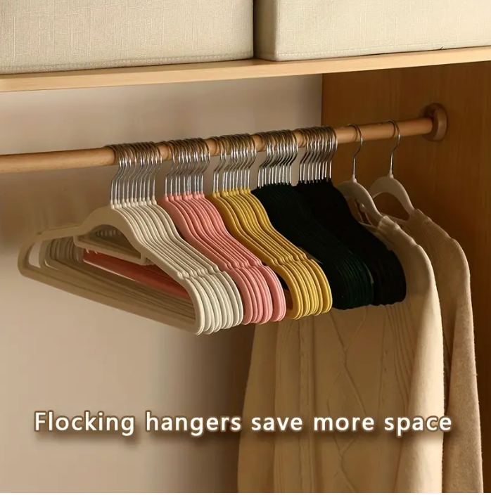 The soft flocked finish grips tops, jumpers, and jackets so nothing slides off, stretches, or ends up on the floor pretending it fell by accident.