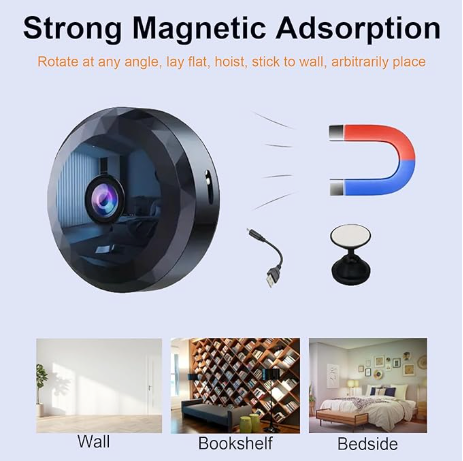 Ultra-compact design with a magnetic mount lets you stick it on shelves, desks, or hidden corners without it screaming “SECURITY CAMERA”.